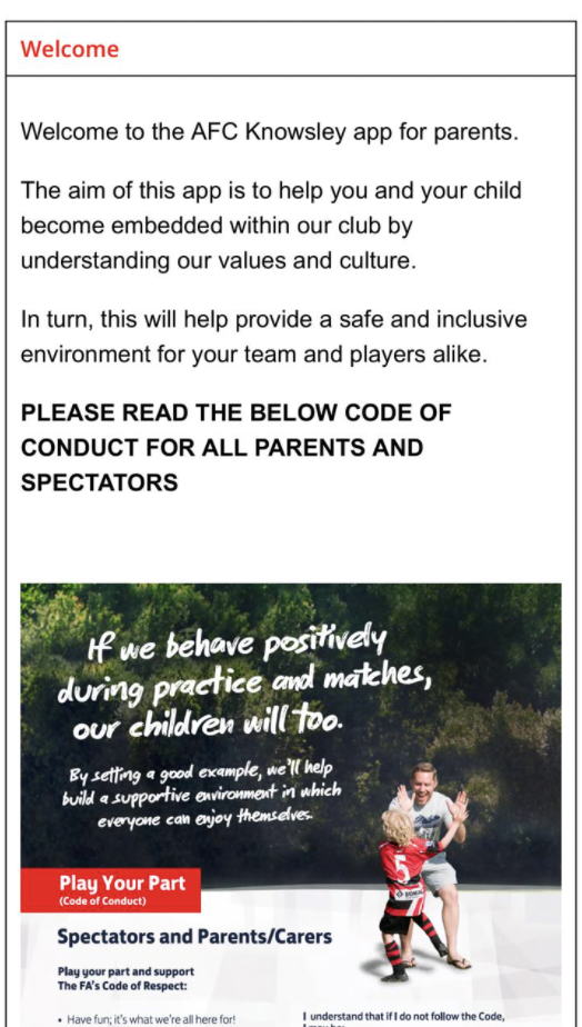 Other benefits of the Parent App is allowing parents to have access to competitions, safe guarding details, leave feedback about our club, make a complaint and access any of our partner offers.